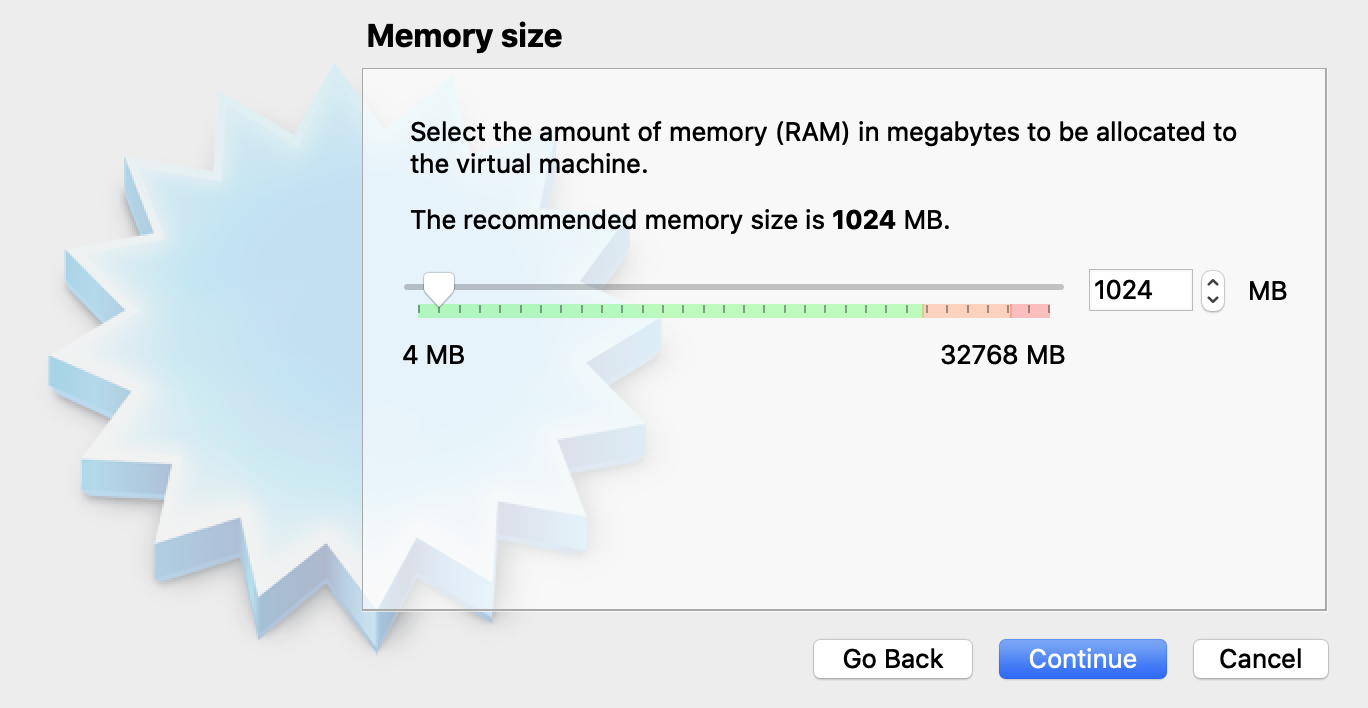 VM의 메모리(RAM)를 얼마나 할당할 것인지 선택하는 화면이다.