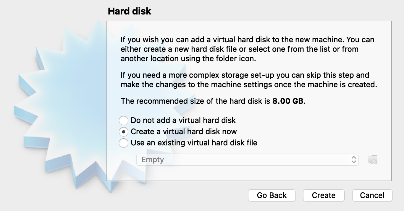 2번째 버튼인 "지금 새 가상 하드 디스크 만들기"를 선택했다.
