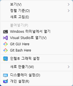 원하는 위치에서 우클릭을 통해 git bash를 실행 가능