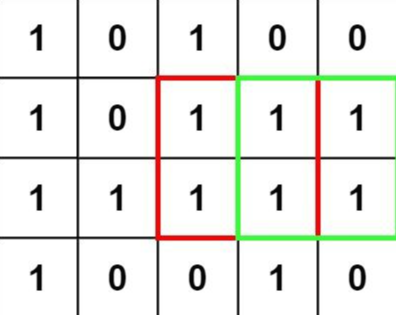 Input: matrix = [["1","0","1","0","0"],["1","0","1","1","1"],["1","1","1","1","1"],["1","0","0","1","0"]]