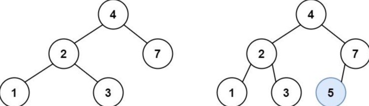 Notice that there may exist multiple valid ways for the insertion, as long as the tree remains a BST after insertion. You can return any of them.