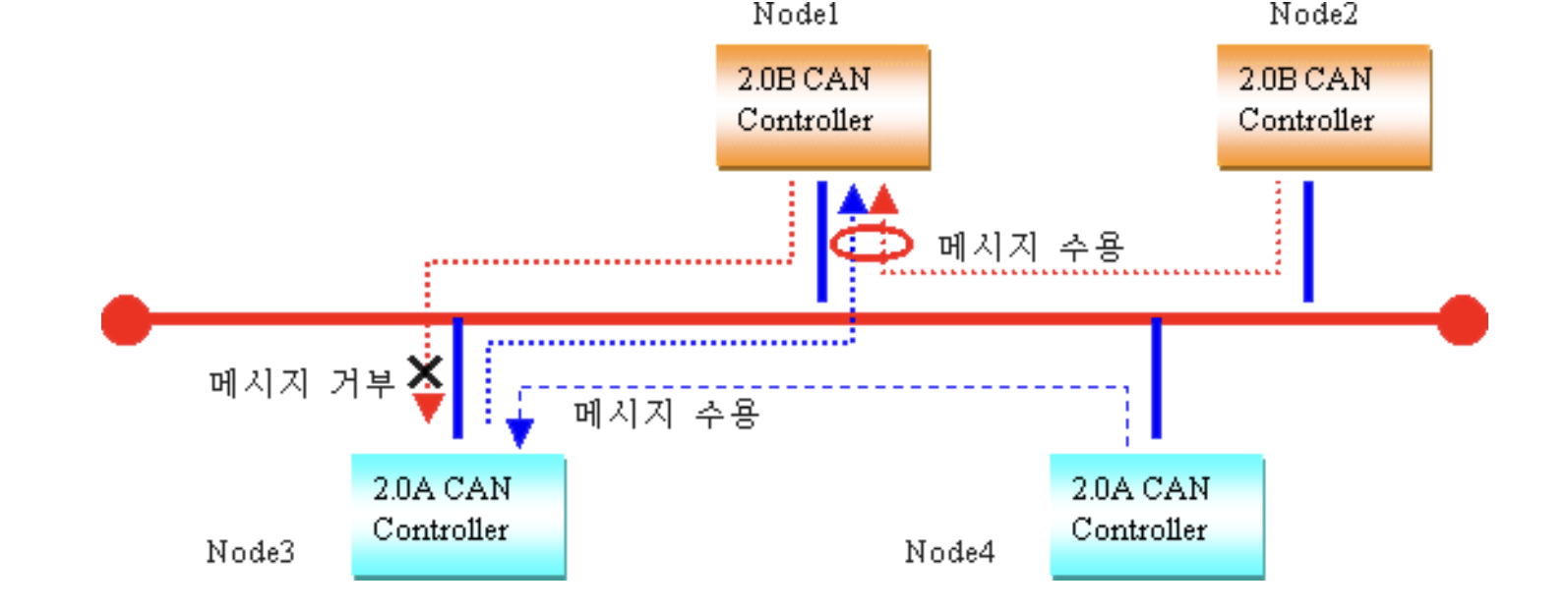 그러나 CAN 2.0B Controller는 모든 메시지 포맷(CAN 2.0A, CAN 2.0B)의 메세지를 송수신 가능하다.