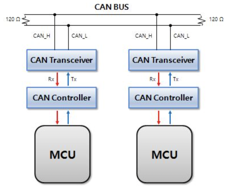 CAN 통신에는 Microcontroller, Can Controller, CAN Transceiver가 필요하다.